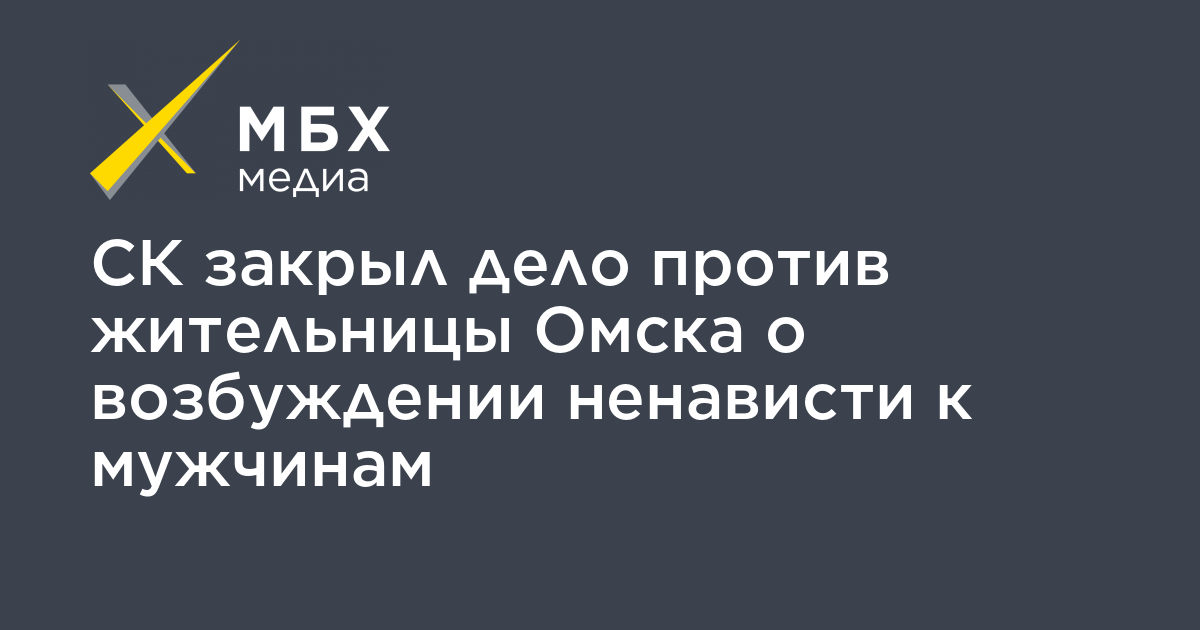 Следственный комитет Омской области прекратил уголовное дело против местной жительницы Любови Калугиной о возбуждении ненависти к мужчинам из-за постов во «ВКонтакте». Об этом Калугина сообщила «МБХ медиа».