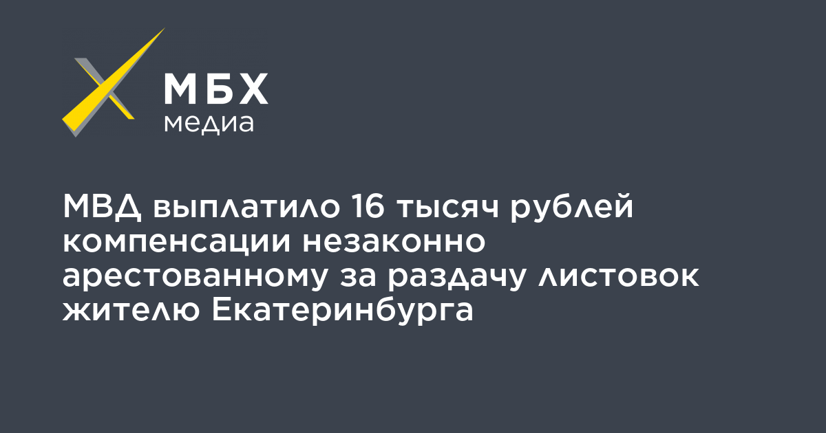 МВД выплатило 16 тысяч рублей компенсации незаконно арестованному за раздачу листовок жителю Екатеринбурга