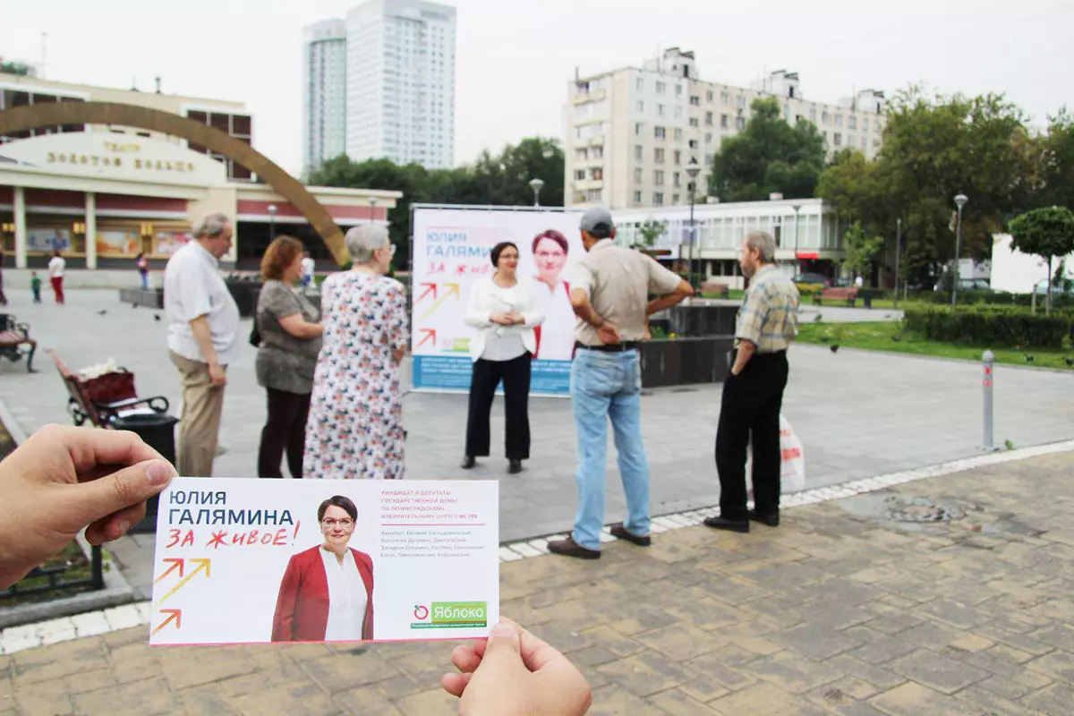 В Ленинградском избирательном округе в Москве на выборах 2016 года оппозицию представляла Юлия Галямина, выдвинутая «Яблоком». Она — научный сотрудник МГУ, преподаватель филологии и журналистики в Высшей школе экономики. Галямина уступила кандидату от «Справедливой России» Галине Хованской, заняв второе место и набрав 16% голосов.