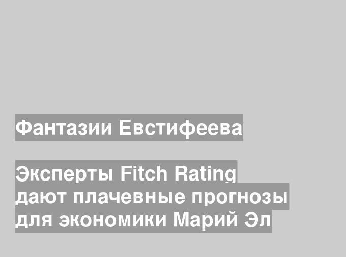 Fitch Ratings — это одно из самых авторитетных и влиятельных международных рейтинговых агентств, предоставляющее мировым кредитным рынкам независимые и ориентированные на перспективу оценки кредитоспособности. С официальным докладом Fitch Ratings по Республике Марий Эл вы можете ознакомиться на сайте рейтингового агентства и убедиться, что прогнозы международных экспертов кардинально отличаются от экономических фантазий Александра Евстифеева.