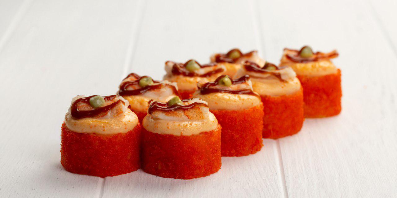 Среди новинок роллов — темпурные роллы с лососем и с креветкой; большой ролл «Радуга» с начинкой из творожного сыра Cremette с лососем, угрем и тунцом; ролл с беконом; ролл с лососем и чукой.