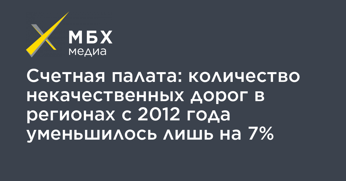 Счетная палата: количество некачественных дорог в регионах с 2012 года уменьшилось лишь на 7%