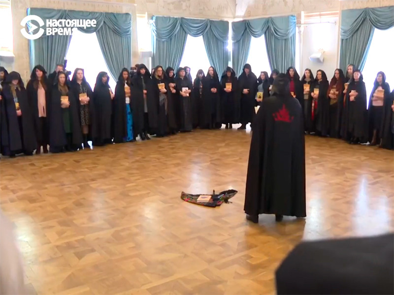 "Кто слышит и не слышит, кто видит и не видит, кто был, есть и будет, слово мое не забудет - подымись величием сила России, направь пути Владимира Путина верно и праведно - через слово мое", - цитирует издание "Настоящее время" одно из заклинаний, которые произносили ведьмы во время обряда. - Да будет сила России крепчать, да будет Владимир Путин верные пути видеть. Величие России, и короновав Россию, напитав истоком, станет сила наша ведовская "Империи сильнейших ведьм" благостной, что оживит и поднимет всю землю. Воистину! Воистину!"