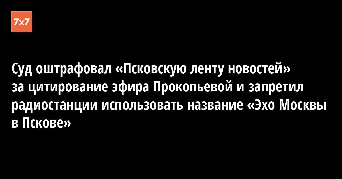 Суд оштрафовал «Псковскую ленту новостей» за цитирование эфира Прокопьевой и запретил радиостанции использовать название «Эхо Москвы в Пскове»