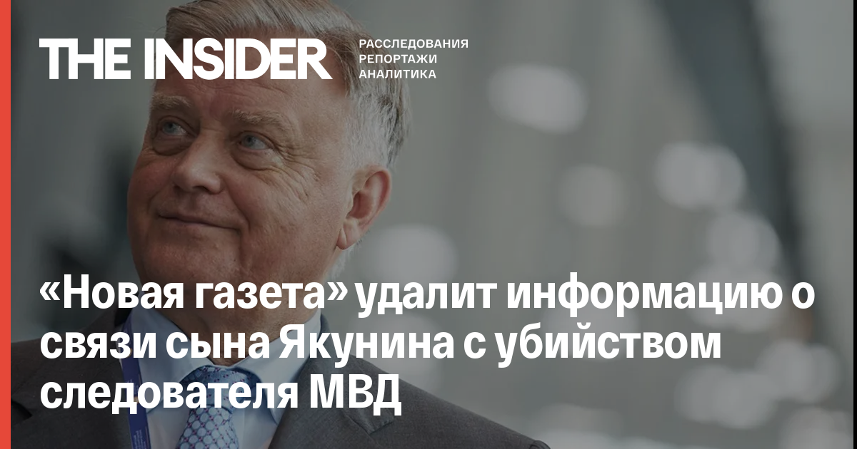«Новая газета» удалит информацию о связи сына Якунина с убийством следователя МВД