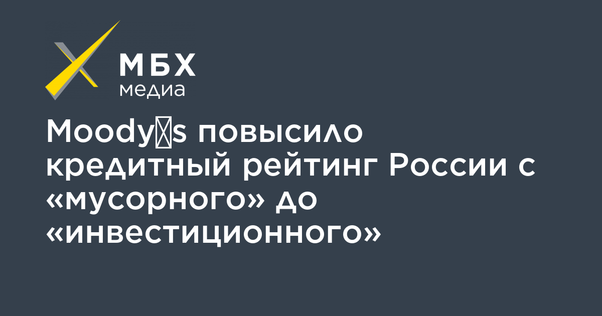 Moodyʼs повысило кредитный рейтинг России с «мусорного» до «инвестиционного»
