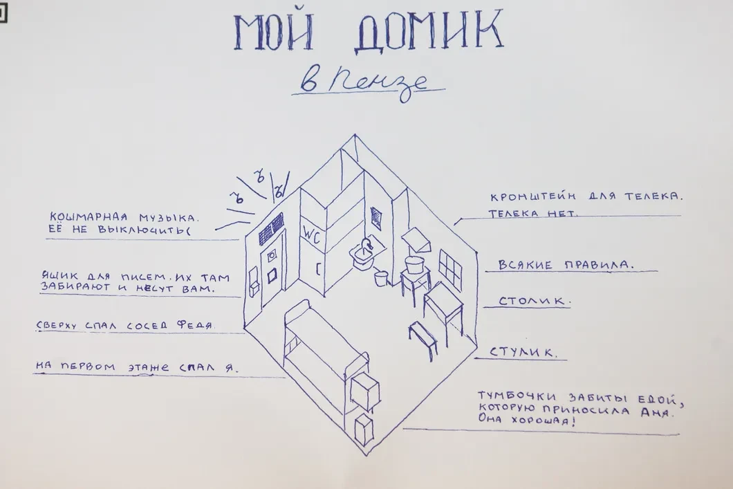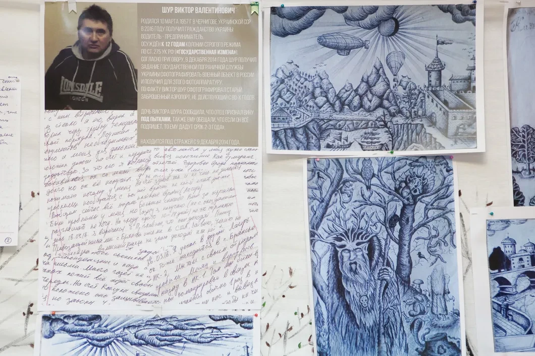 В местах лишения свободы запрещено использовать краски, цветные карандаши, фломастеры – можно иметь только синюю или черную шариковую ручку. Но стремление к созиданию — неотделимая часть жизни человека. До 1 марта в петербургском «Открытом пространстве» (ул. Достоевского, 34) можно увидеть выставку «Творчество политзаключенных»: журналист Юлия Шалгалиева вместе с координатором гуманитарного проекта «Сказки для политзаключенных» Еленой Эфрос собрали рисунки узников, их стихи, прозу, фрагменты писем на волю. Декорации для выставки подготовили арт-группа «ЯВЬ» и архангельская художница Анна Данилова. «Новая» побывала на открытии экспозиции.