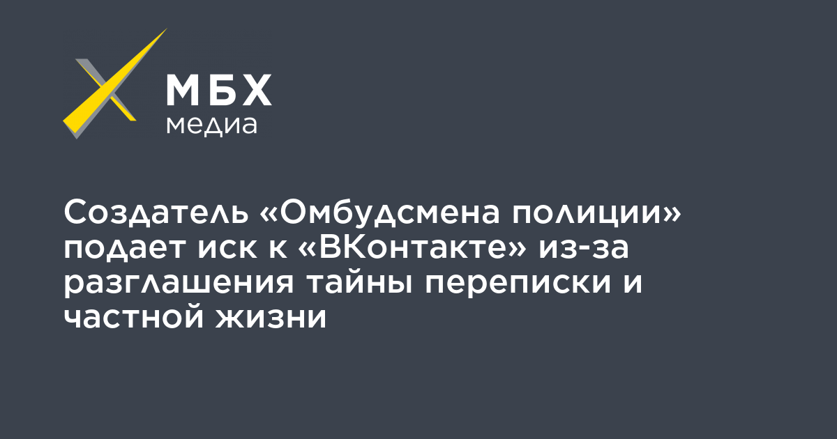 Создатель «Омбудсмена полиции» подает иск к «ВКонтакте» из-за разглашения тайны переписки и частной жизни