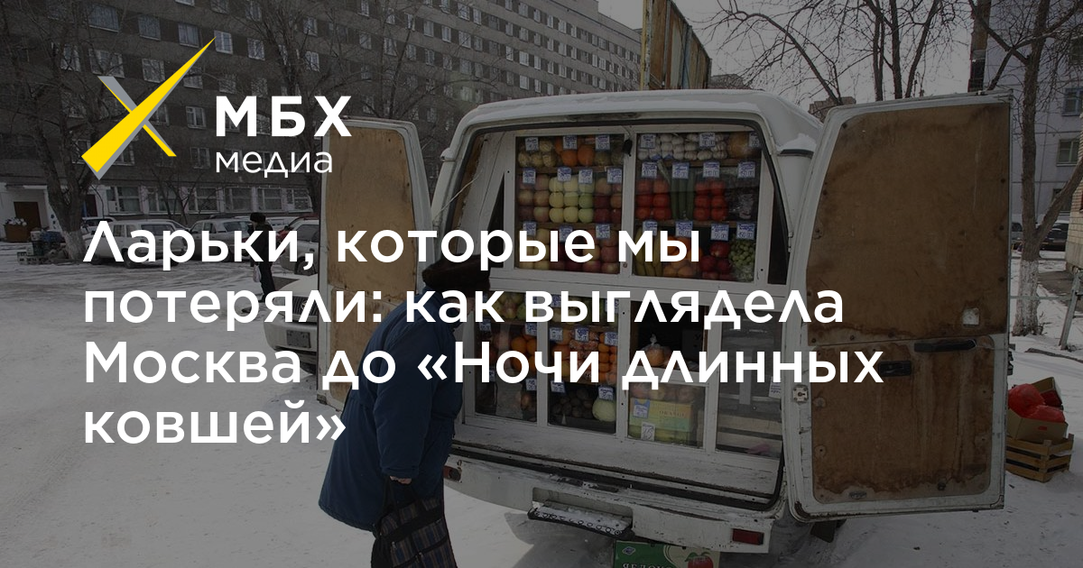В Москве ларьки и киоски стали исчезать с 2010 года, когда мэром города стал Сергей Собянин: он хотел «избавиться от пережитков прошлого». Через шесть лет, 8 февраля 2016 года, в столице случилась «ночь длинных ковшей», и в центре города за несколько часов снесли 97 киосков и палаток. «МБХ медиа» показывает, какой была Москва с ларьками и продуктовыми лавками.