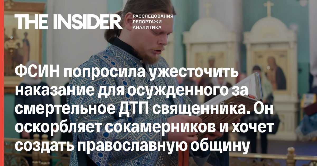 ФСИН попросила ужесточить наказание для осужденного за смертельное ДТП священника. Он оскорбляет сокамерников и хочет создать православную общину