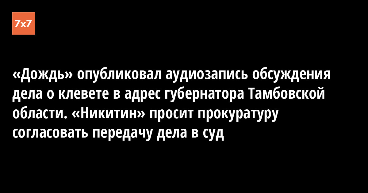 «Дождь» опубликовал аудиозапись обсуждения дела о клевете в адрес губернатора Тамбовской области. «Никитин» просит прокуратуру согласовать передачу дела в суд