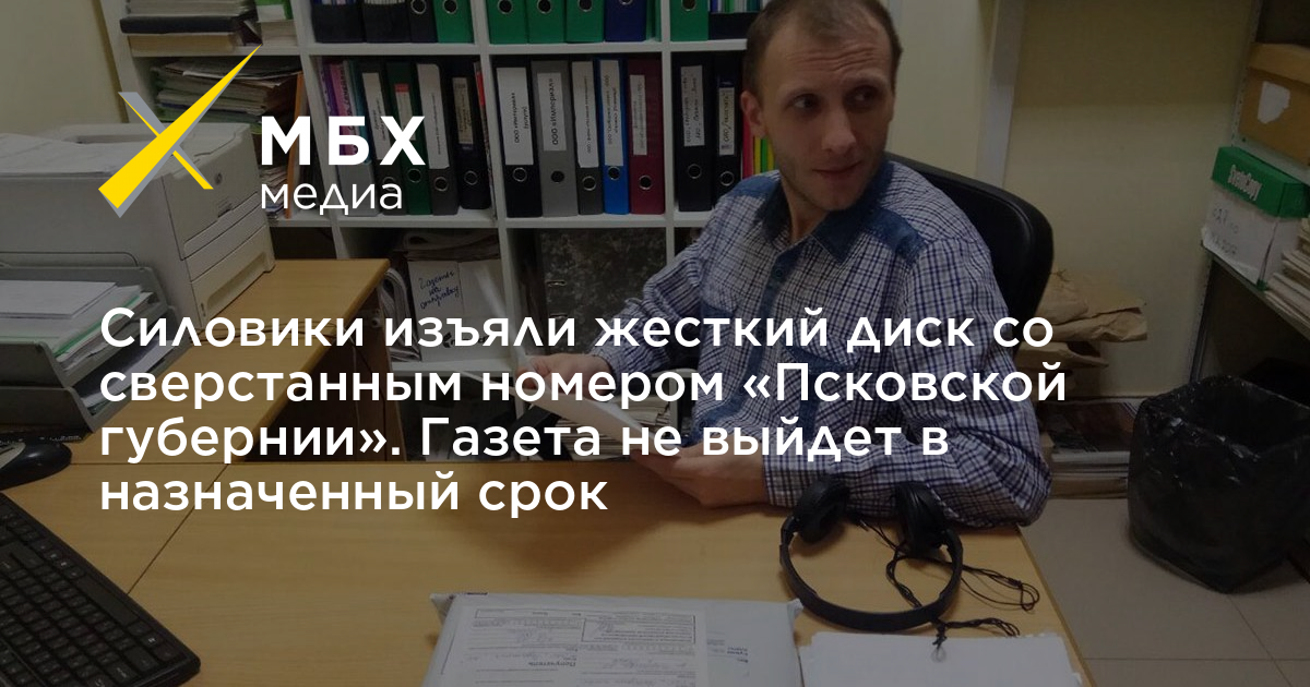 Очередной номер газеты «Псковская губерния» не выйдет в срок из-за того, что силовики во время обысков изъяли жёсткий диск с компьютера, на котором версталось издание, сообщил корреспонденту «МБХ медиа» главный редактор газеты Денис Камалягин.