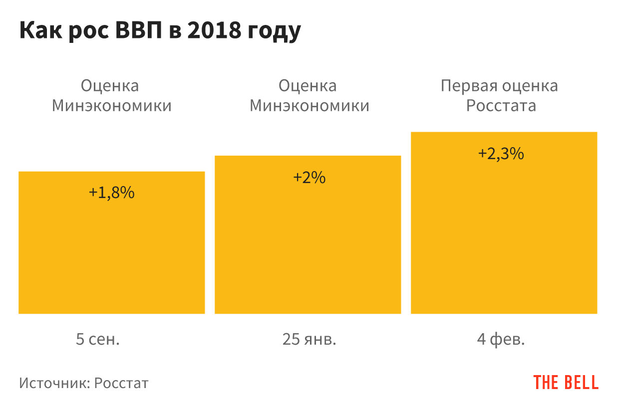 Неожиданные данные Росстата о росте российской экономики до рекордных за шесть лет 2,3% в 2018 году оказались «разовой историей», делать из них глобальные положительные выводы не стоит, признал министр экономики Максим Орешкин. В этом году российский ВВП вырастет максимум на 1,3%, а может, и меньше, заявил он в интервью «Ведомостям».