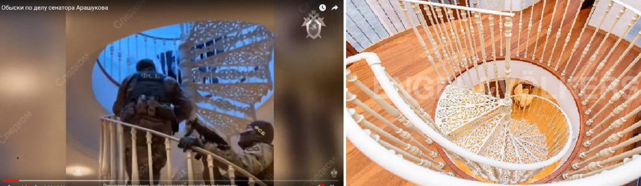 - На прошлой неделе телеграм-канал Mash сообщил, что после ареста Арашуковых квартира из видеозаписи обысков выставлена на продажу за 99 млн рублей, объявление появилось на сайте агентства Engel & Völkers. Фото объекта в объявлениях и изображение на видео СК совпадают.