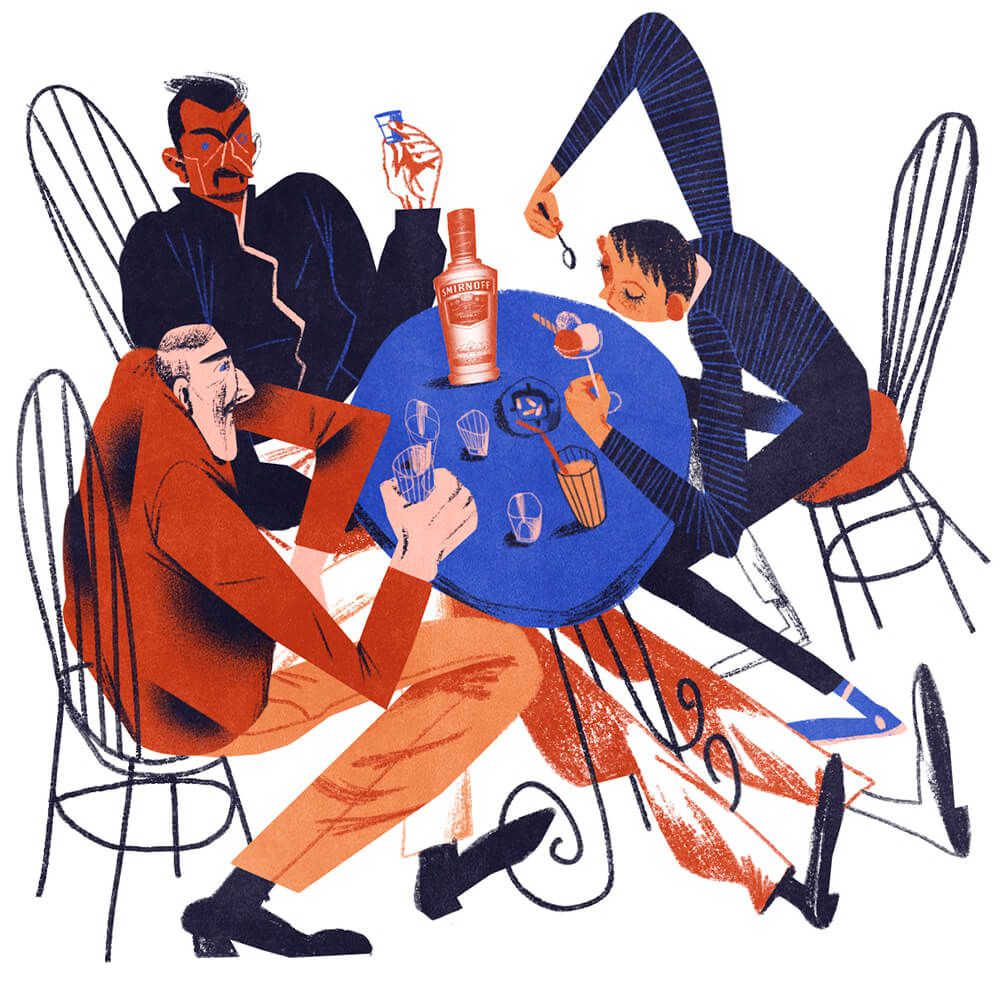 Когда я возвращался за столик, он всё так же методично вливал в себя водку с апельсиновым соком, внимательно разглядывая свои ладони.