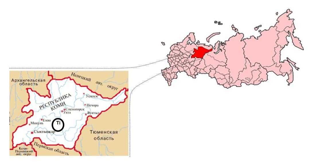 Самое крупное месторождение титана на территории России (640 млн.тонн титановой руды), содержит более 40% балансовых запасов диоксида титана (TiO2) промышленных категорий в РФ. Месторождение находится в центральном промышленном районе Республики Коми с высокоразвитой инфраструктурой. Лейкоксеновая титаносодержащая руда Ярегского месторождения в среднем содержит 9% диоксида титана (TiO2). В ходе разработки Ярегского месторождения был сформирован научный и практический опыт по добыче и переработке титаносодержащей руды.