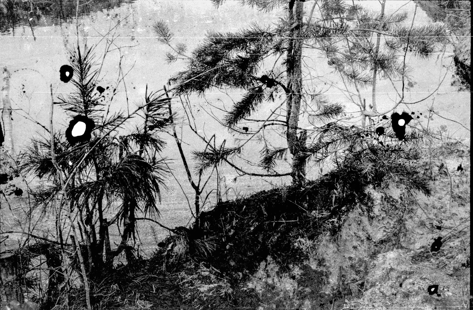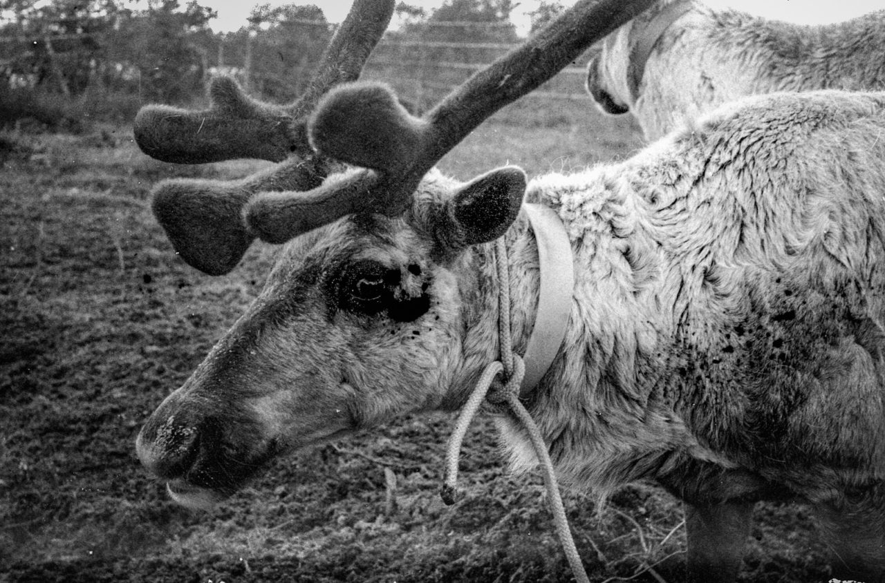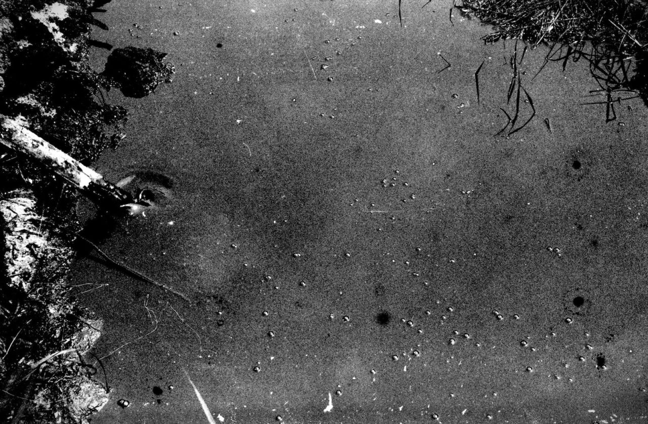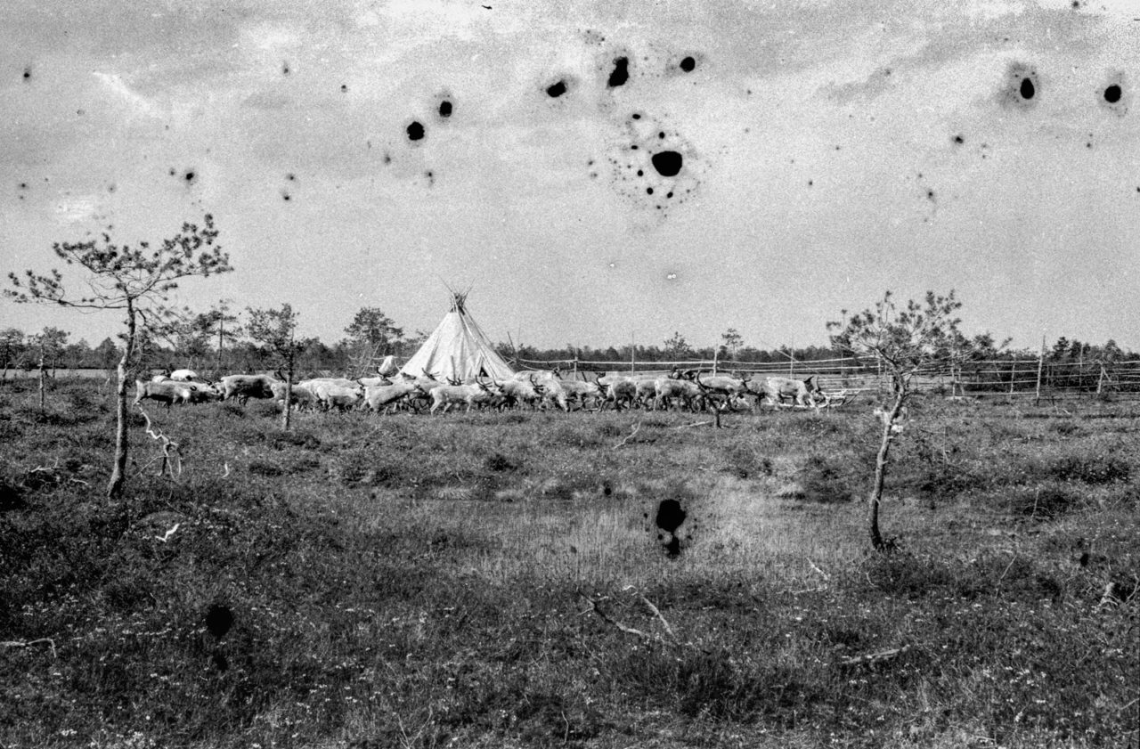 Молодой олень с пантами, летняя стоянка Тэвлиных, ХМАОФото: Игорь Терешков Фотографии для проекта «Мох и нефть» были сняты на черно-белую пленку, выдержанную перед проявкой в нефтесодержащей жидкости с разливов в ХМАО. При всей своей «органичности» нефть воздействует на желатиновый слой пленки, как и на окружающую среду, — вторгаясь, выжигая и фрагментируя ее.