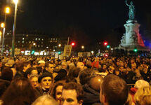 Как передает Le Monde, в Париже на митинг вышли десятки тысяч человек - Площадь Республики была очень плотно заполнена людьми. Митинг начался с пения "Марсельезы".