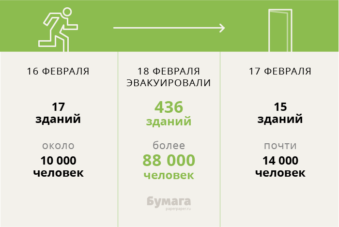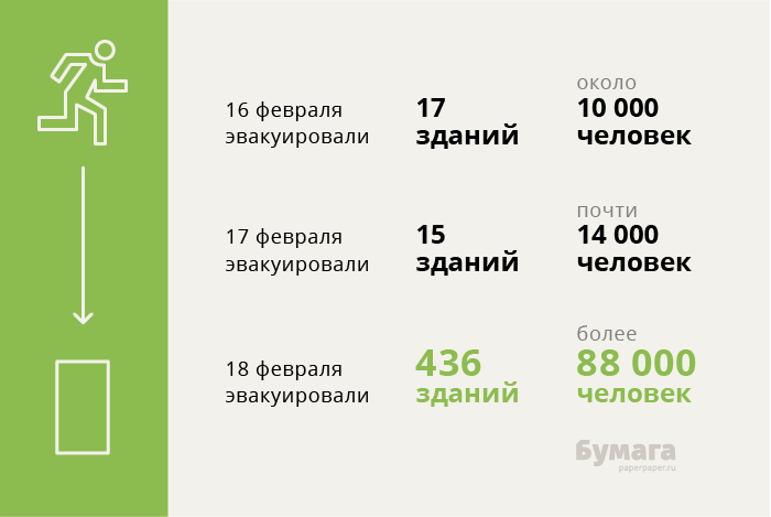 Итоги массовых эвакуаций в Петербурге 16, 17 и 18 февраля — в инфографике
