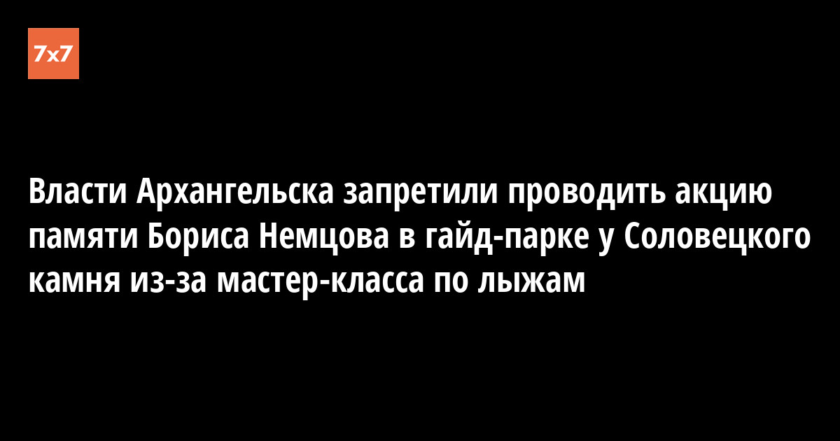 Мэрия Архангельска отказалась согласовать митинг памяти политика Бориса Немцова у памятника жертвам политических репрессий. Мероприятие должно было состояться 24 февраля, но власти сослались на то, что у подножия Соловецкого камня будет проходить спортивное мероприятие. Один из организаторов акции, председатель архангельского ПАРНАСа Юрий Щербачев сообщил «7x7» об отказе мэрии 20 февраля.