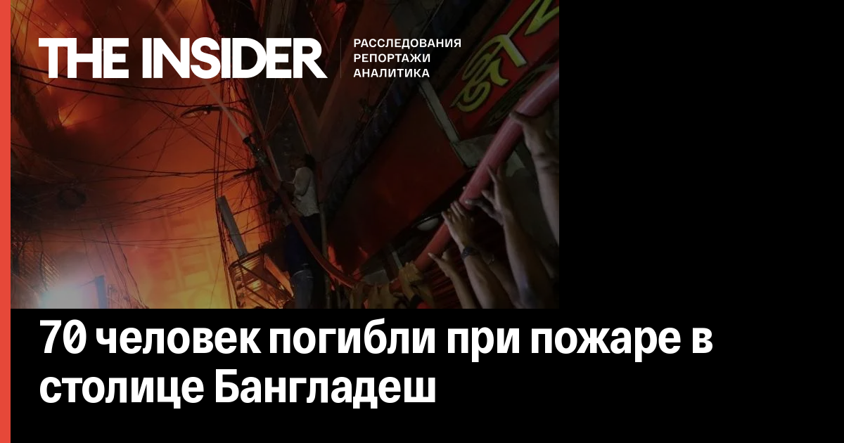 В результате пожара в жилом доме столицы Бангладеш городе Дакке погибли не менее 70 человек, более 50 попали в больницу. По крайней мере 9 из них находятся в критическом состоянии. Об этом сообщает Sky News со ссылкой на представителя пожарных служб и гражданской обороны.