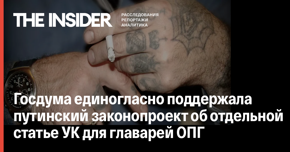 Госдума единогласно поддержала путинский законопроект об отдельной статье УК для главарей ОПГ