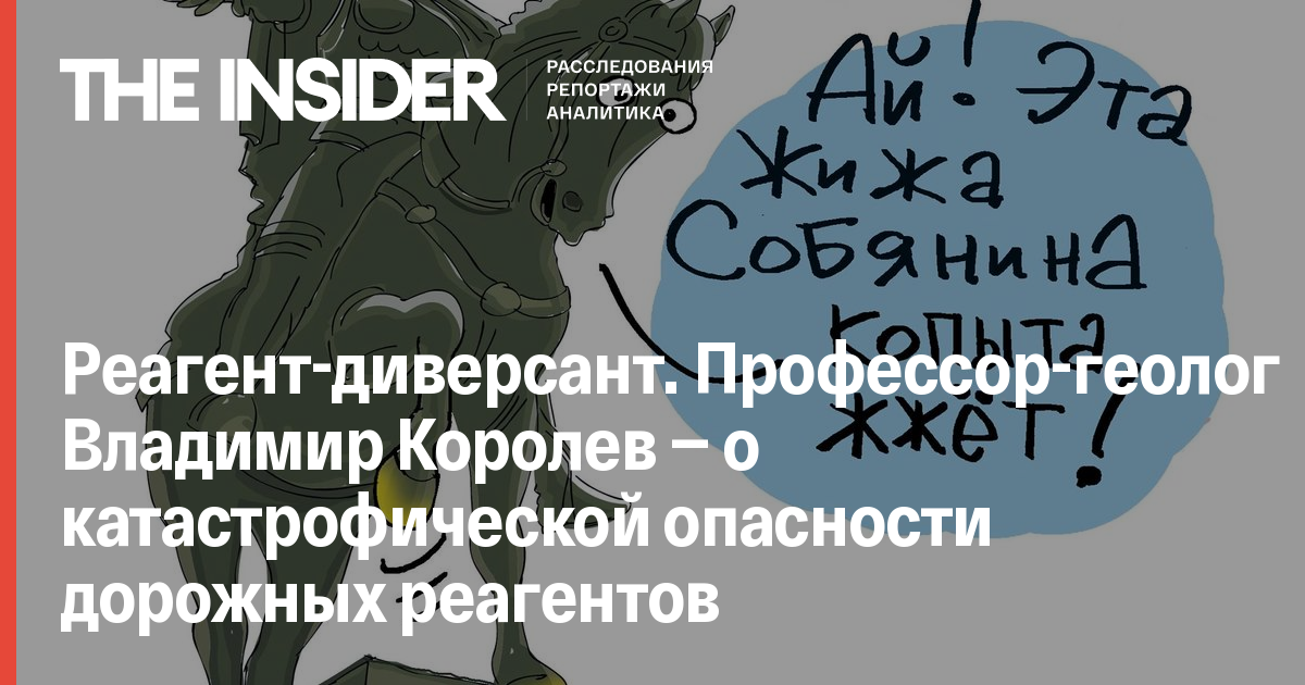 Между тем недавно университетские ученые опубликовали новую статью, в которой подтверждается вред, который могут наносить реагенты дорогам, экосистемам и даже металлам и стройматериалам. Профессор геологического факультета МГУ Владимир Королев разъяснил The Insider, как применение реагентов вредит не только одежде, траве и животным, но и кабелям и трубопроводам и почему оно может быть причиной аварий, подобных январскому обрушению грунта в Тушинском тоннеле в Москве.