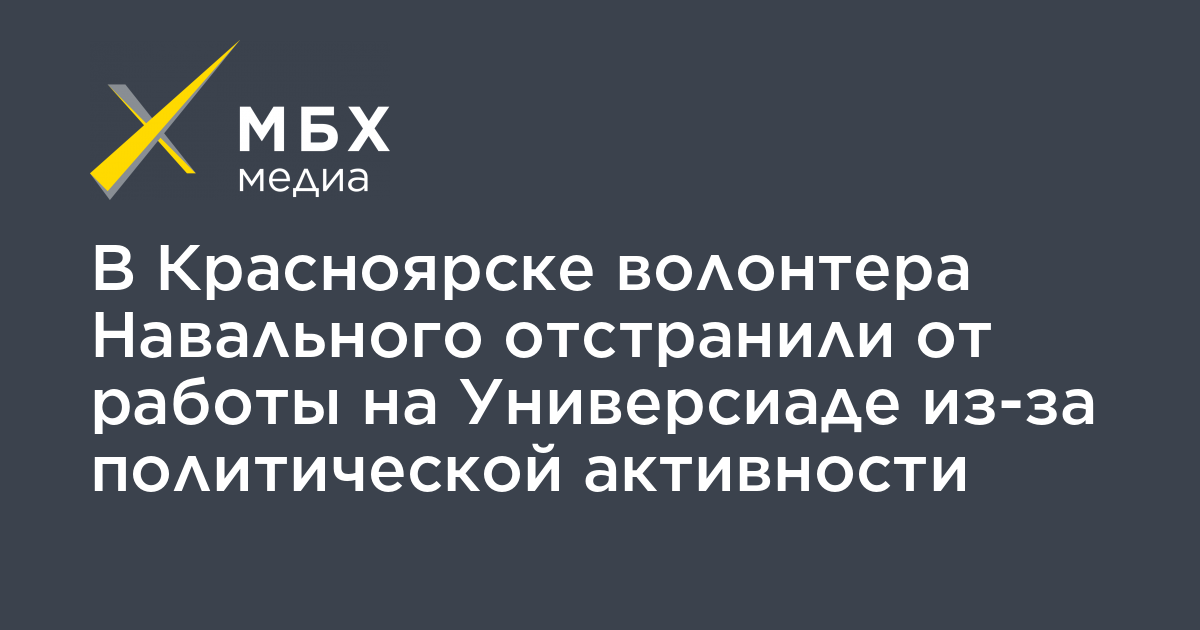 В Красноярске волонтера местного штаба Навального Глеба Марьясова отстранили от работы на Универсиаде из-за политической активности, об этом сообщает «Сибирь.Реалии» со ссылкой на самого активиста.