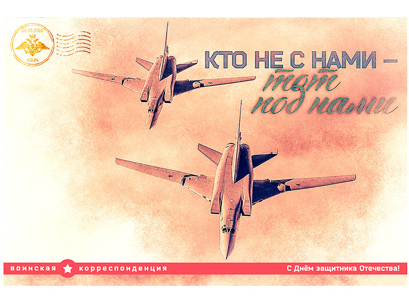 Минобороны России выпустило набор открыточек к 23 февраля. Поздравления выглядят эпично, например "Кто не с нами - тот под нами" pic.twitter.com/GPdncwXxYO