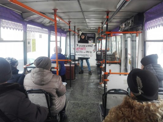 - Актвисты Комсомола Алтайского края провели в конце января серию одиночных пикетов в общественном транспорте Барнаула. Пикетчики обратили внимание пассажиров автобусов на проблему отмены льгот на проезд для малообеспеченных студентов.