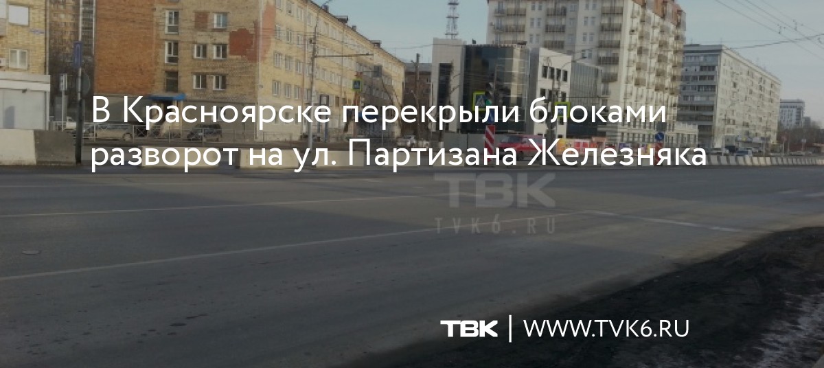 В Красноярске перекрыли блоками разворот на ул. Партизана Железняка