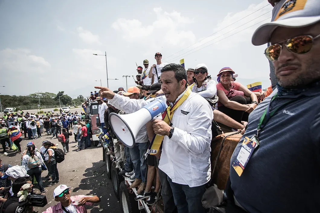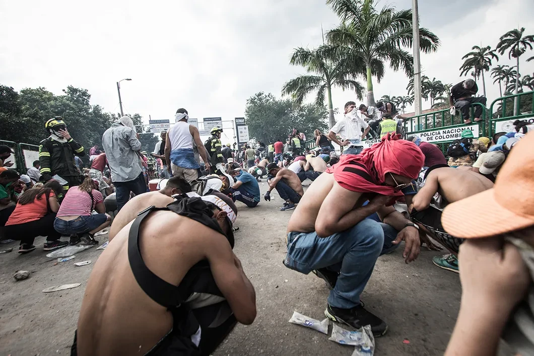 Объявленный оппозицией Венесуэлы на 23 февраля въезд гуманитарной помощи в страну вылился в кровавые столкновения. Безуспешные переговоры с полицией об открытии границы через час перешли в бои. За одну лишь субботу, по данным правительства Колумбии, было ранено 285 человек. Основные столкновения прошли в пограничном городе Кукута — на мосту Симона Боливара и на погранпункте Уренья.