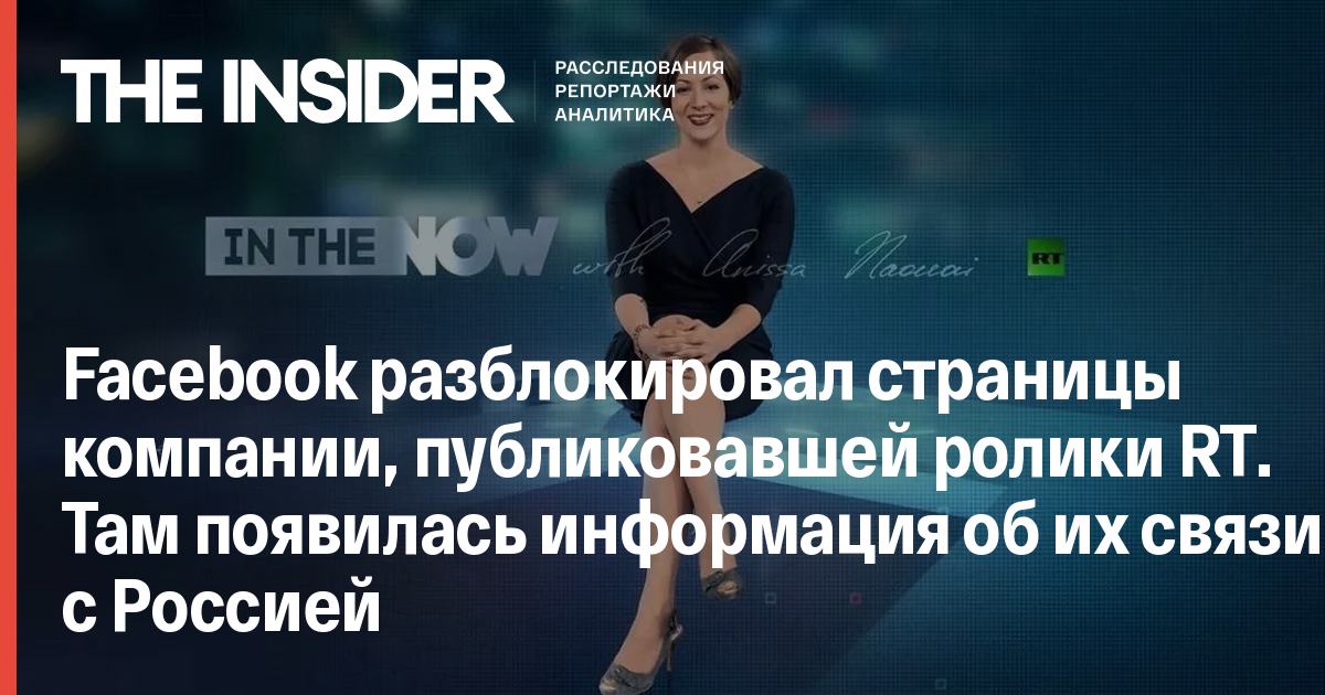 Facebook разблокировал страницы компании, публиковавшей ролики RT. Там появилась информация об их связи с Россией