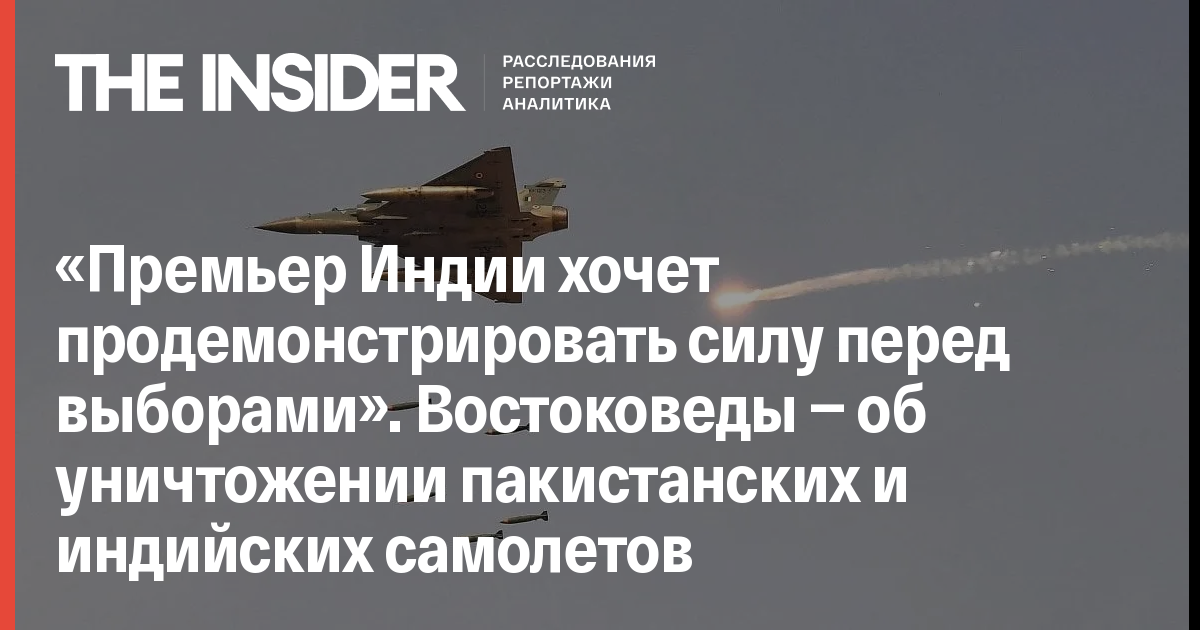 «Премьер Индии хочет продемонстрировать силу перед выборами». Востоковеды — об уничтожении пакистанских и индийских самолетов