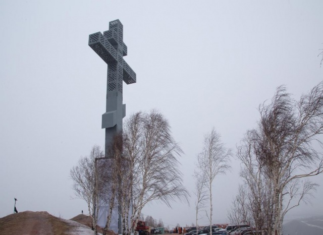 Монтаж 47-метрового монумента начался в январе 2019 г., а завершился в неделю назад. Чтобы крест было видно ночью, вокруг установили подсветку.