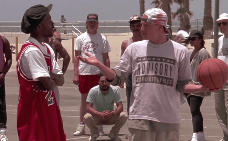 Для юного поколения наклейка Parental Advisory становится знаком качества. Обратите внимание на футболку Вуди Харрельсона в фильме 1992 года «Белые люди не умеют прыгать»: