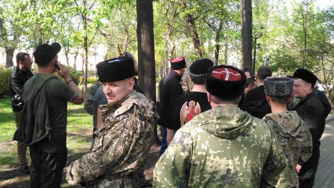 5 мая я специально пришел на акцию со своими друзьями, казаки там уже были в тот момент. Я потом узнал у других людей, что они появились на площади еще до начала акции. Сложно сказать, сколько их было, но не меньше пятнадцати человек. Пытались затеять какие-то конфликты, дебаты, что-то выкрикивали. Говорили какие-то стандартные фразы про агентов Госдепа, Вашингтон и всё в таком духе.