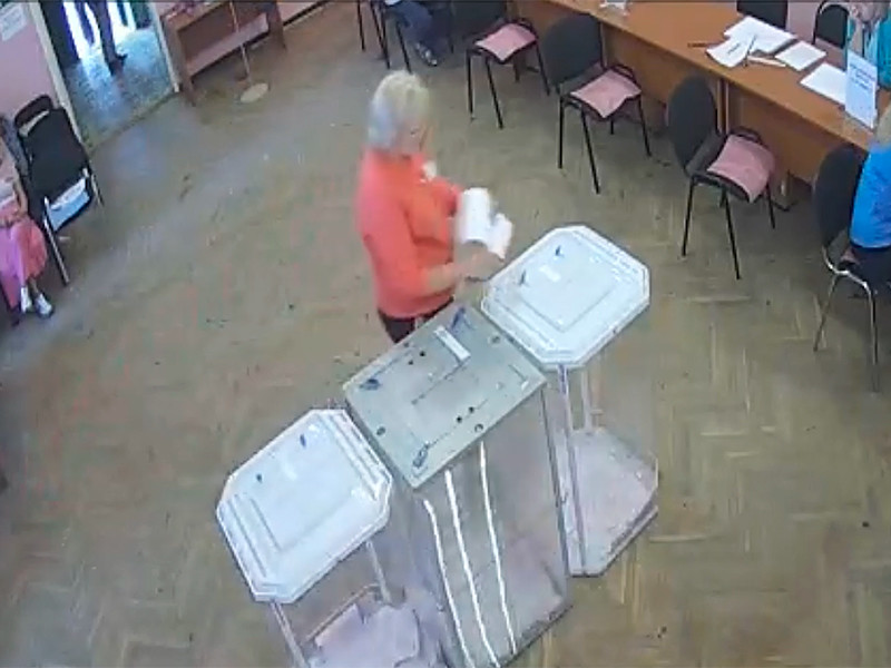 На видеозаписи видно, как члены участковой комиссии подходят по несколько раз к стационарной урне и опускают бюллетени. Председатель комиссии Татьяна Матвеева подходила к урне пять раз, зампред Наталья Мортякова - три раза, секретарь Светлана Балан - два раза, член комиссии Наталья Алексеева - три раза, член комиссии Алла Якушина - два раза. Кроме того, три наблюдателя подходили к ящику для голосования по два раза и опускали бюллетени.