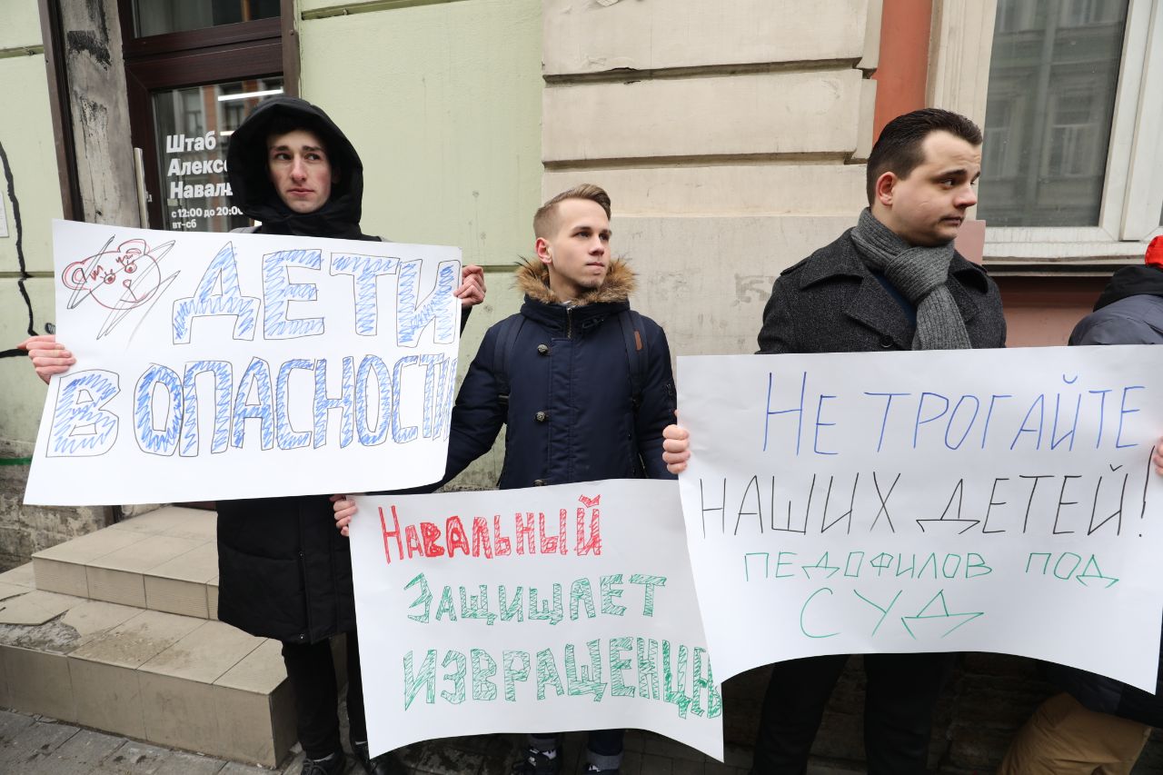 На фасаде штаба Навального в Петербурге написали «штаб педофилов»; перед зданием проходит пикет «в защиту детей»