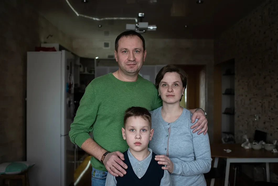 Игорь Коботов с женой Юлией и сыном Егором. Фото: Виктория Одиссонова / «Новая газета»