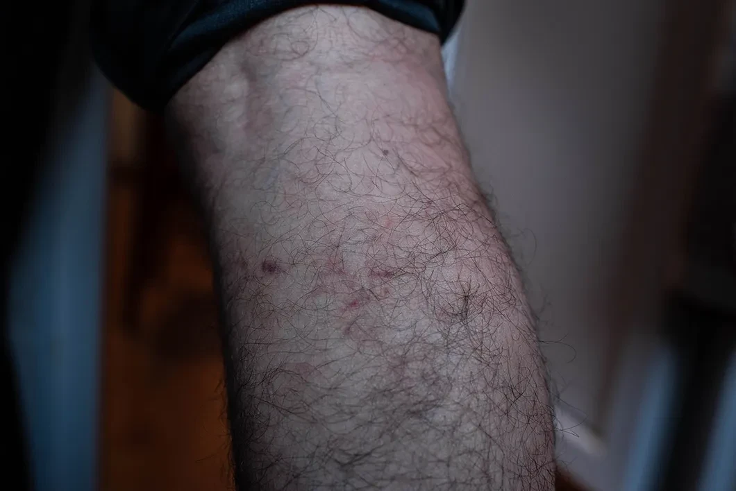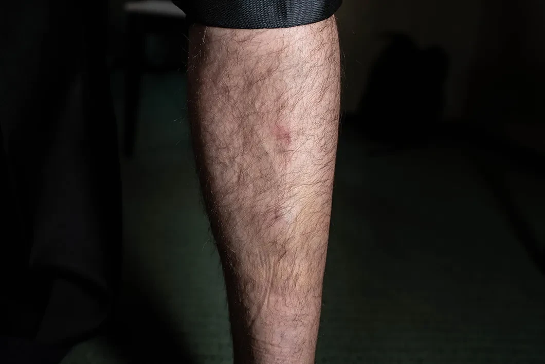 Евгений Кайряк. Следы от электрошокера видны даже спустя 9 дней после пыток. 24 февраля 2019 года. Фото: Виктория Одиссонова / «Новая газета»