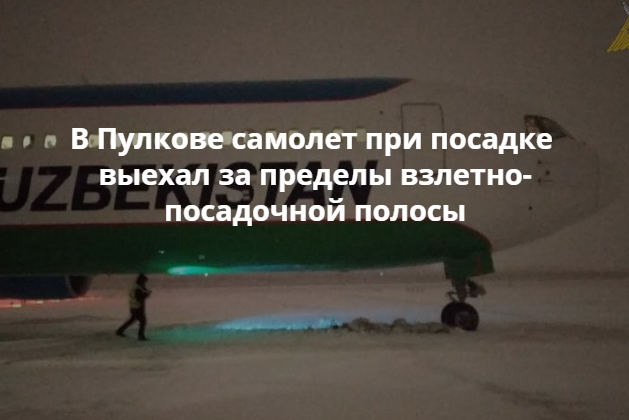 Вечером 2 марта в петербургском аэропорту Пулково самолет Uzbekistan Airways из Ташкента при посадке выкатился за пределы взлетно-посадочной полосы.