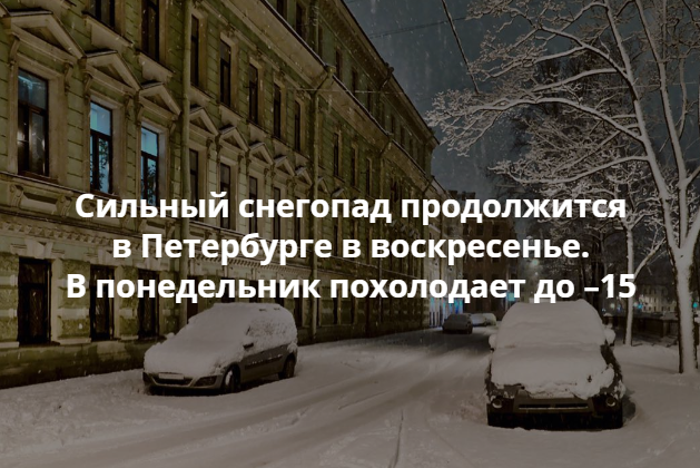 Сильный снегопад продолжится в Петербурге в воскресенье