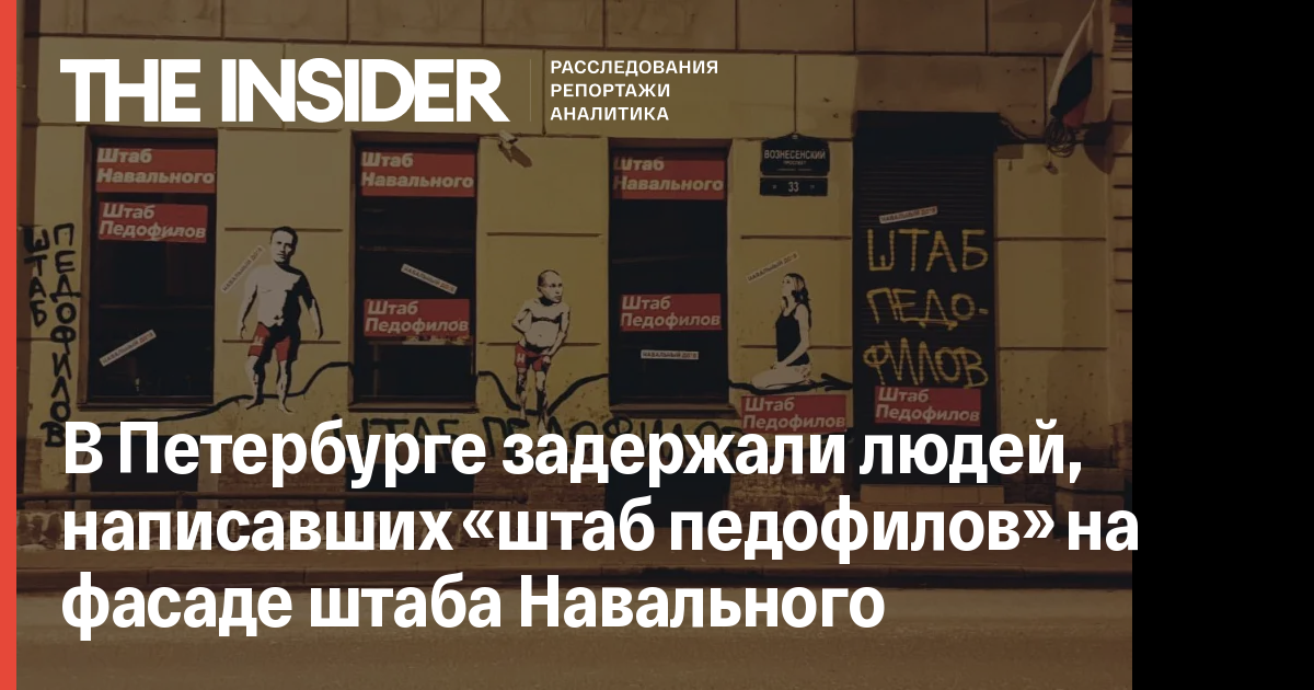 В Петербурге задержали людей, написавших «штаб педофилов» на фасаде штаба Навального
