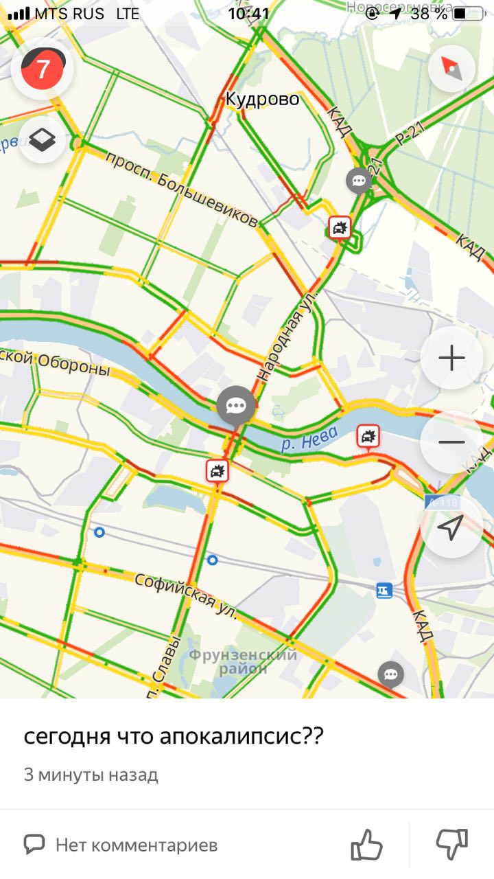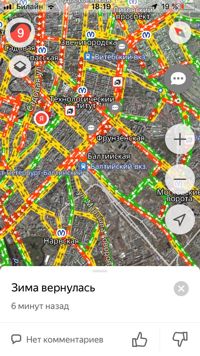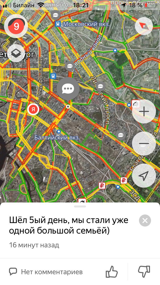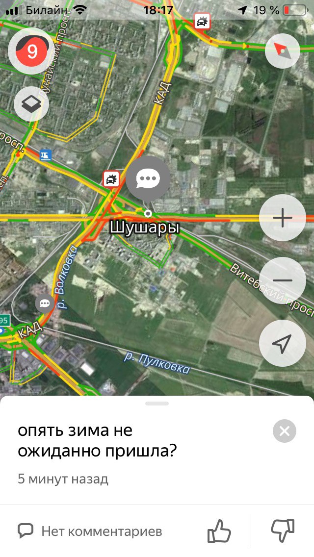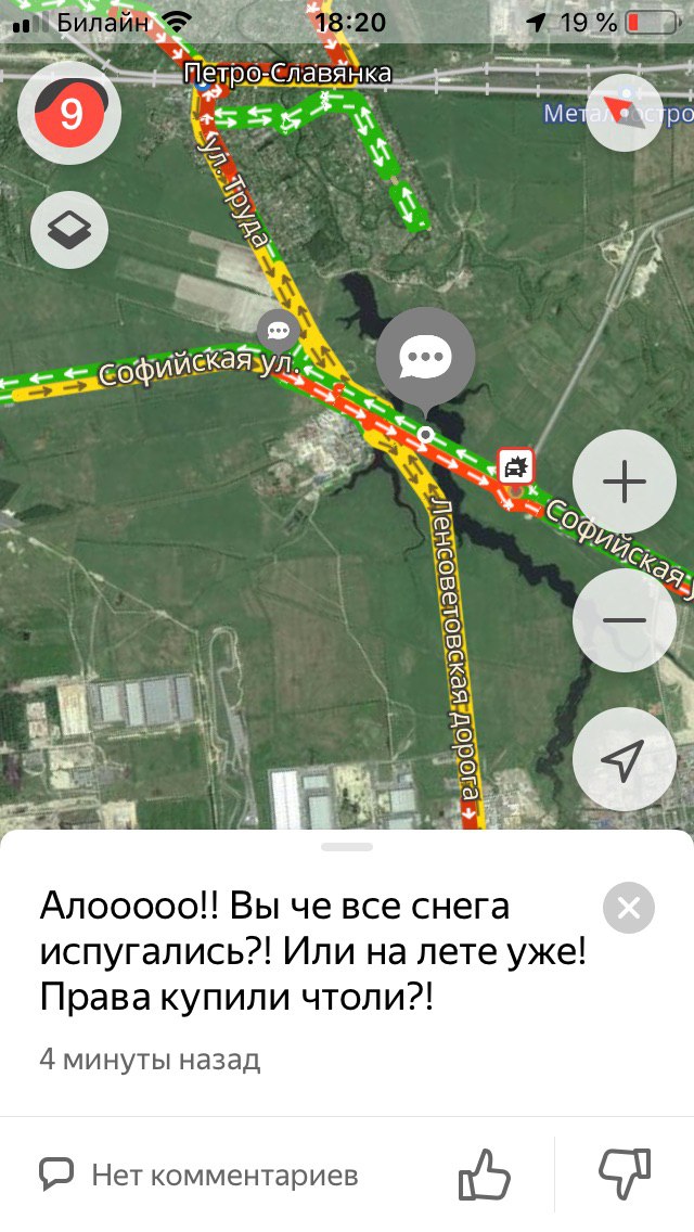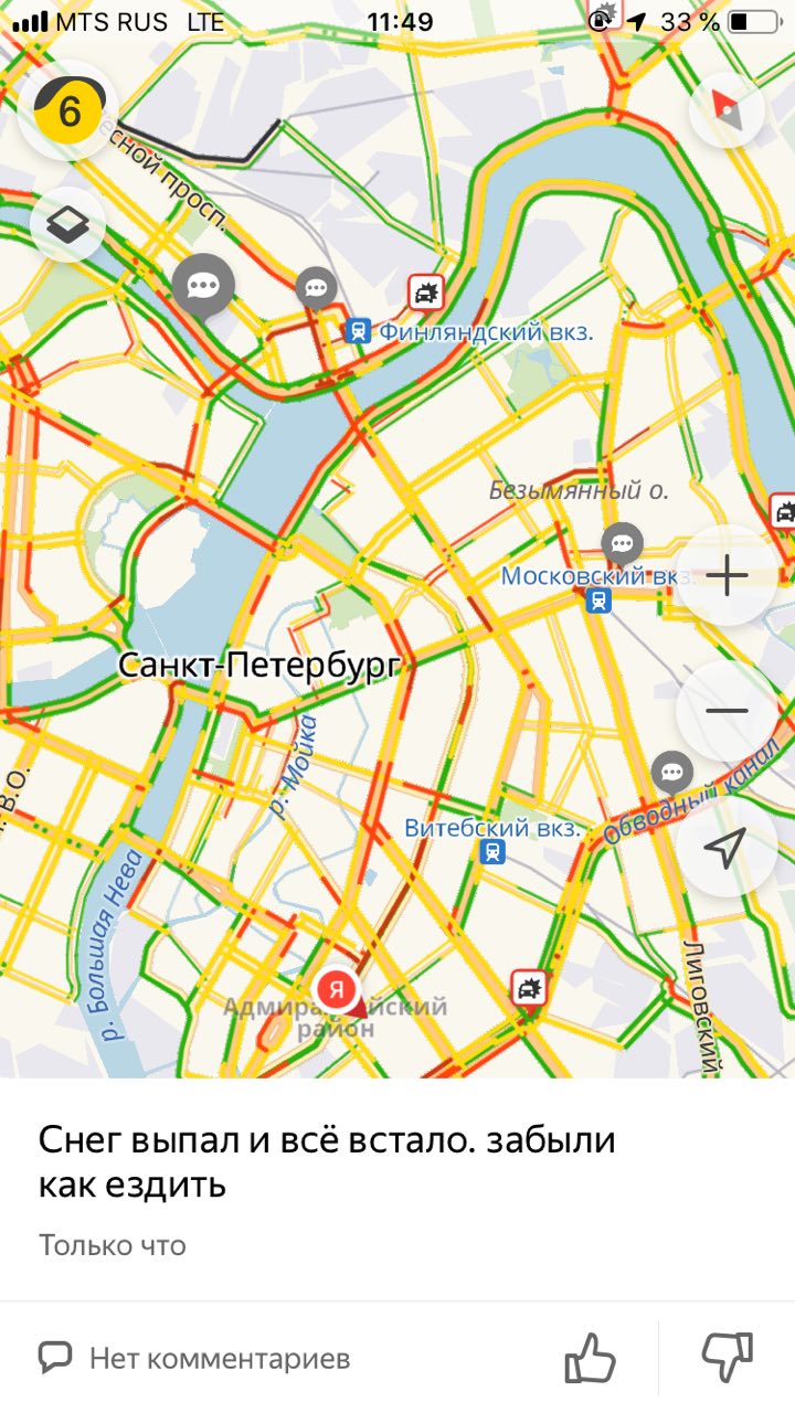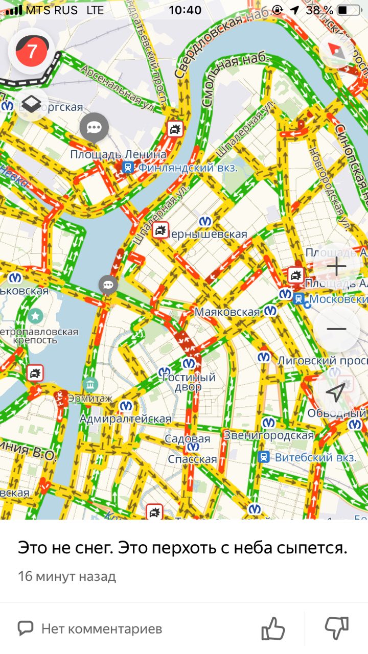 Сегодня ночью в Петербурге прошел сильный снегопад. Утром водители встали в семибалльные пробки из-за занесенных снегом дорог. Метель продолжалась весь день, а к вечеру пробки выросли до девяти баллов. «Бумага» собрала «разговорчики» недовольных петербуржцев из мобильного приложения «Яндекса» — с предложениями познакомиться и требованиями отставить Беглова.