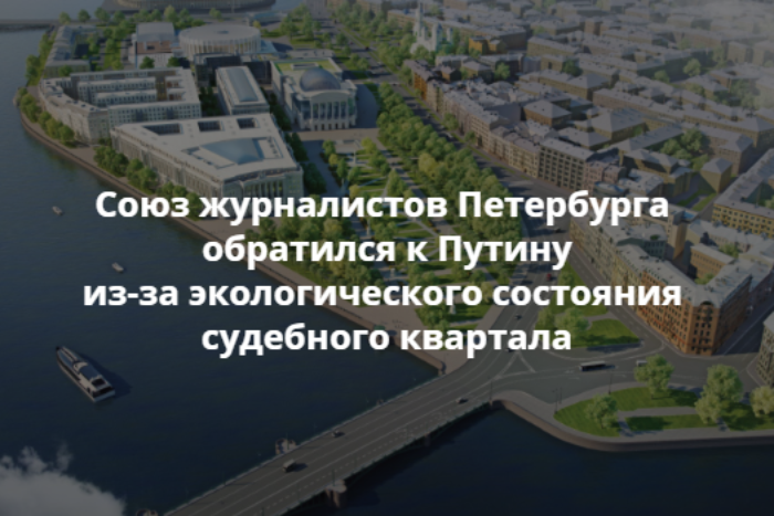Союз журналистов Петербурга и Ленобласти обратился к президенту России Владимиру Путину в связи с несоблюдением мер экологической безопасности на участке, где планируют построить судебный квартал. Обращение опубликовано на сайте организации.
