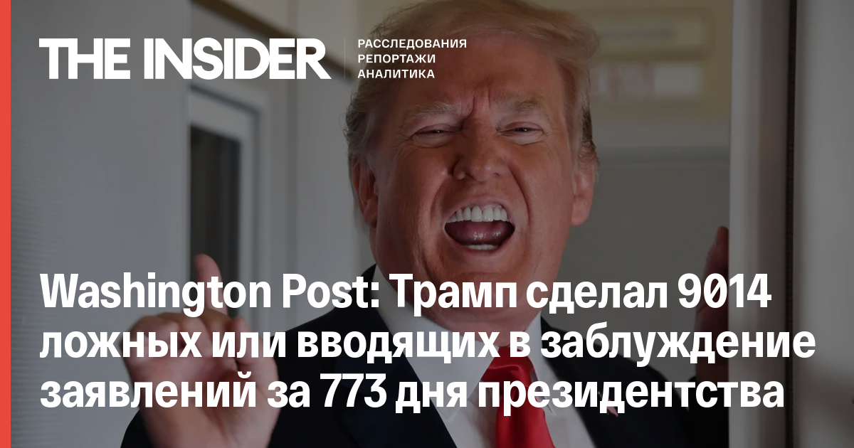 Президент США Дональд Трамп за время пребывания на посту сделал 9014 ложных или вводящих в заблуждение заявлений, сообщает The Washington Post со ссылкой на собственную базу The Fact Checker.