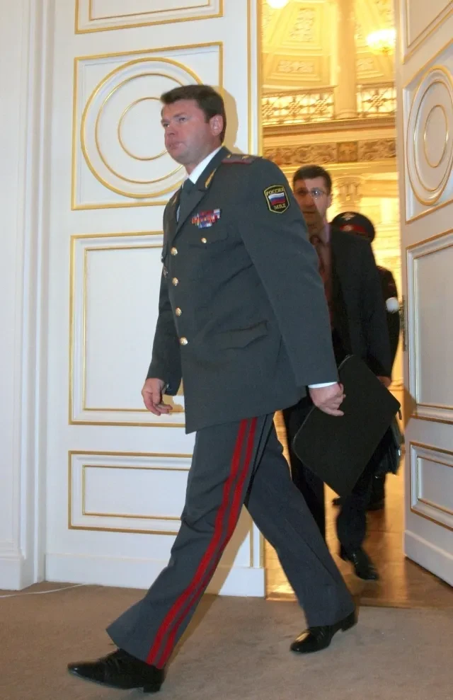 «Он вошел в окружении телохранителей — мужчин в черных костюмах типа «Китон». Если к прежнему начальнику ГУВД Владиславу Пиотровскому можно было зайти и на чай, поскольку он вырос из сержантов, то
