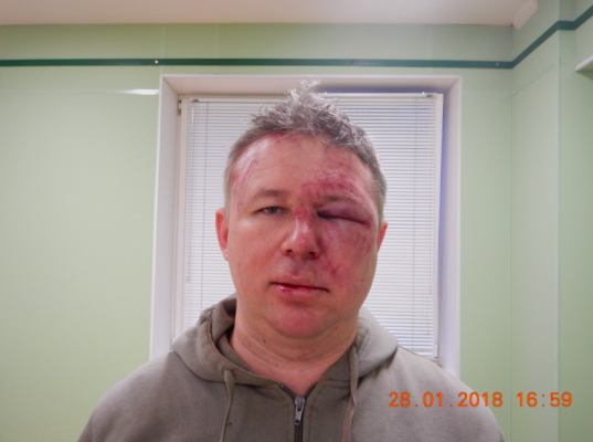 «Выходя из машины, я разговаривал по телефону. В этот момент на меня налетели двое мужчин, первый удар я смог отразить, но пришлось отступить, когда на меня набросились еще двое. Я оказался зажат между оградой дома и машиной, и драка происходила в таком ограниченном пространстве. В какой-то момент меня сильно ударили по голове, я упал, меня продолжили бить, а потом отобрали телефон и быстро скрылись. Не знаю, что их остановило, что они хотели. Но нападавшие бросили фазу примерно такую: «защищать пидорасов будешь?», — рассказал координатор «Руси сидящей».