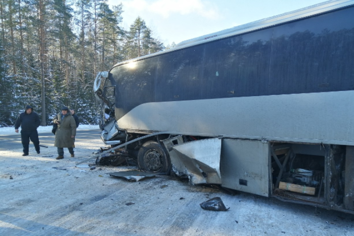 Утром 5 марта в Волховском районе Ленинградской области легковой автомобиль «Рено Логан» столкнулся с рейсовым автобусом, который следовал по маршруту Тихвин – Санкт-Петербург.